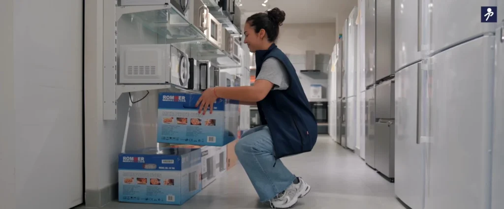 En una gran superficie de electrodomésticos, ¿cuál es la medida preventiva prioritaria contra el riesgo ergonómico asociado a la manipulación de grandes cajas (ej. neveras o lavadoras)?